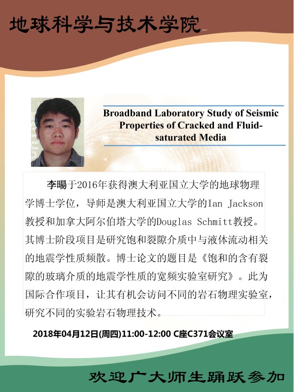 关于举办地震岩石物理研究系列讲座的通知