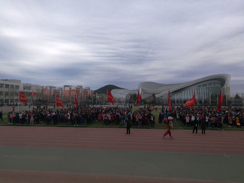 操场集合,MG冰球官网参加健步行的比旁边的单位人多很多!