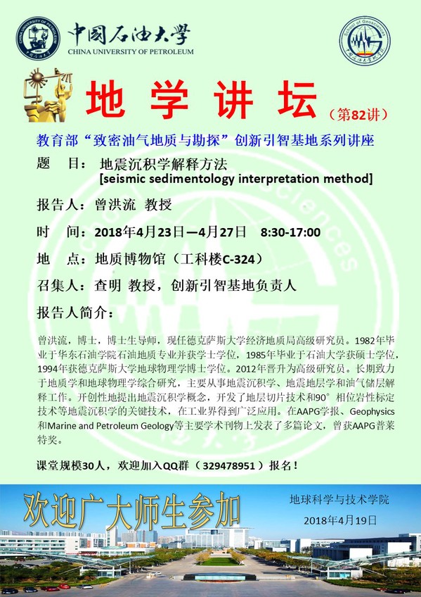 【地学讲坛第82讲】关于曾洪流教授系列学术讲座的通知