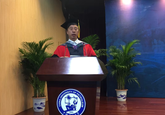 学位授予结束后,院长林承焰代表学院向所有完成学业,即将踏上征途的毕业生致以最诚挚的祝贺。他表示,MG冰球突破官网网站从一个教研室单独建系,经过65年的风雨兼程、砥砺前行,如今已取得长足发展,在一流学科建设的快车道上奋力前进。在座的每一位毕业生,是学院事业发展的亲历者,更是参与者,学院的每一点进步都有着同学们的支持和贡献,希望今后同学们能一如以往地关注和支持学校、学院发展,在未来的道路上发扬勘探精神,敢为人先;脚踏实地,胸怀全球;坚持学习,追求卓越。