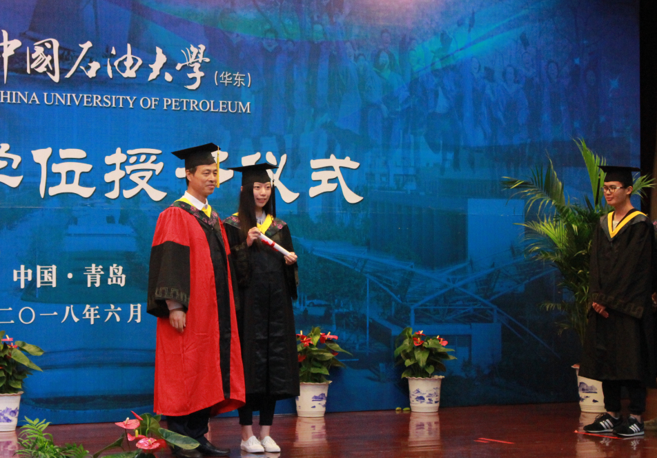 学位授予仪式上,学院学位评定分委员会主席、院长林承焰教授上台一一为每一名毕业生拨穗正冠,授予学位并合影留念。今年,MG冰球官网共有429名本科生,313名硕士研究生,25名博士研究生圆满完成学业,取得学位。