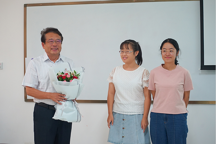 第一次独立走上讲台授课的李志娜收到学生们的鲜花非常激动,她说:“今天于我是特别有意义的一天,收到学生们的鲜花特别激动,非常感谢学院领导的关怀。作为青年教师,我也会继续努力,向各位老师多学习,努力站好这三尺讲台!”