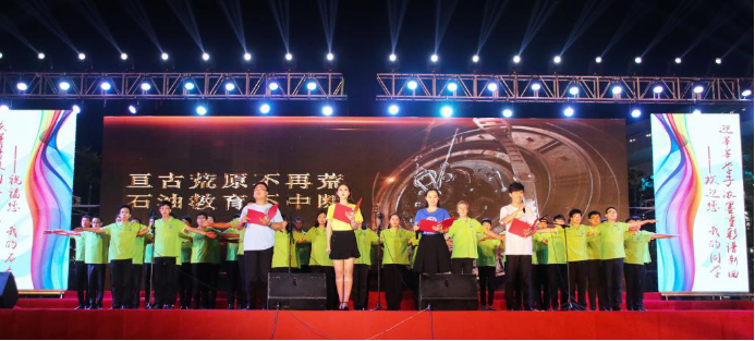 “六十五年弦歌不辍,强国一代续写华章” 9月26日晚,在一片欢呼声中,学校2018级迎新晚会成功举办。MG冰球官网50余名师生参与了诗朗诵《岁月如歌》,歌曲《我为祖国献石油》等诸多节目,用精彩的表演欢迎千禧学子,祝福母校65岁生日。