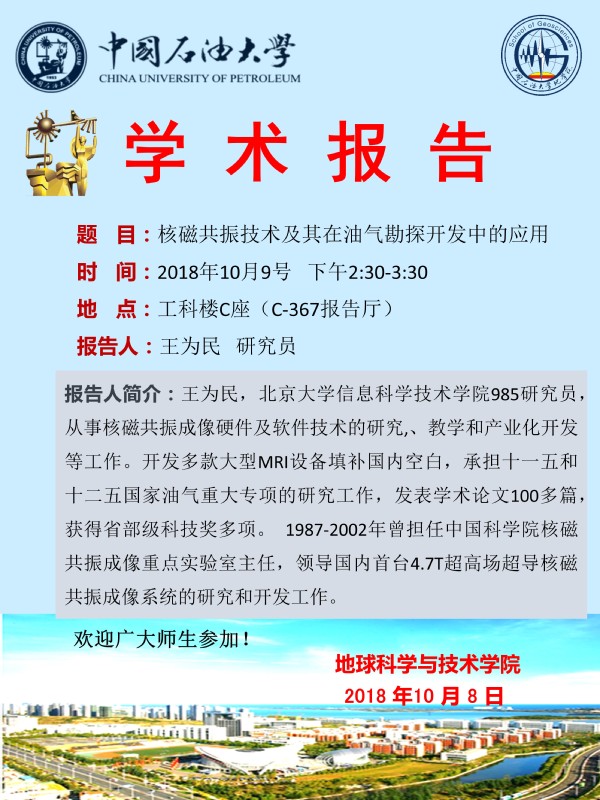 【学术报告】关于王为民研究员的学术报告通知
