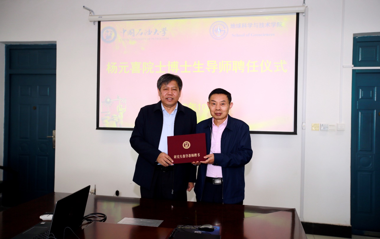【本站讯】10月11日,学校聘请中国科学院院士杨元喜为计算机技术与资源信息工程学科博士生导师,校长、中国科学院院士郝芳为杨元喜院士颁发聘书。