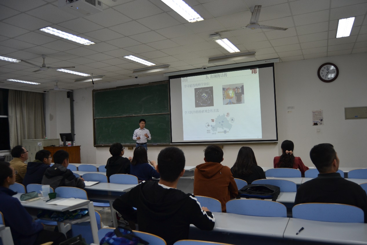 10月22日晚上召开的MG冰球突破官网网站研究生、博士生国际交流宣讲会由贺凯飞老师主讲,辅导员董晓真老师参加。贺老师从“为什么要出国学习”展开,从学科知识、经济来源、拓宽眼界几个方面为同学们介绍国内外学习生活的不同之处和国家为支持大学生、研究生和博士生出国提供的优厚条件。之后又为大家介绍了我校公派留学项目和国家奖励项目以及申请条件,并主要就即将开始申请的国家创新型人才国际合作培养项目进行了详细的讲解及动员;并鼓励大家打好语言和专业课基础,积极申请,希望同学们能把握时机,走出国门,学习学科前沿知识,努力成为国际人才,为建设双一流学科助力。