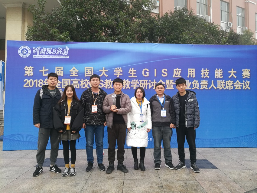 【本站讯】11月30日-12月2日,第七届全国大学生GIS应用技能大赛在河南理工大学举行,MG冰球官网地理信息科学专业2015级学生朱思翰、韩源、费童涵、王振庆组成MG冰球突破官网网站代表队斩获特等奖,刘瑞娟、吴会胜获评优秀指导教师。