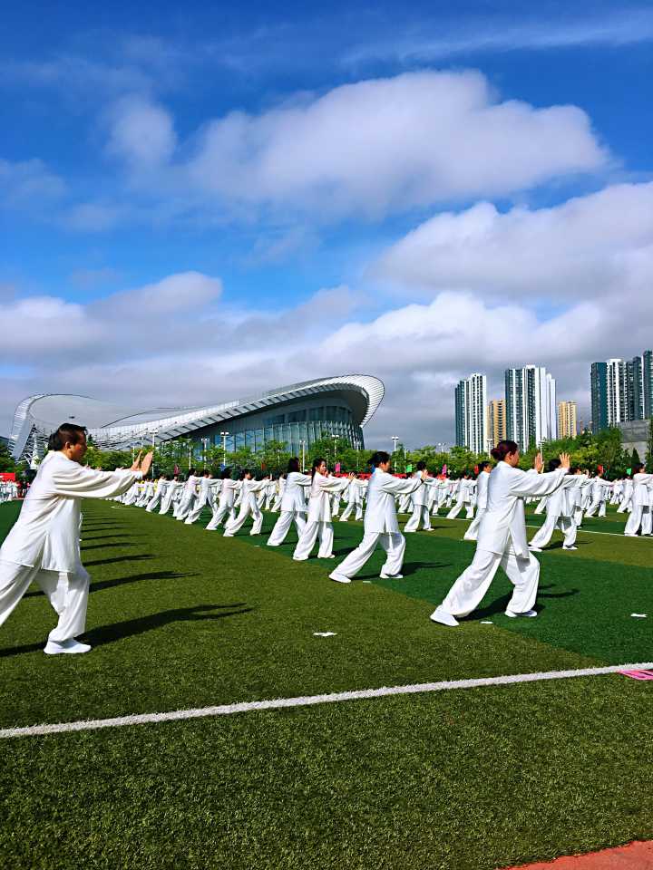 MG冰球官网老师在太极拳表演,动作整齐优美,为群体活动增加了亮色,也确保了道德风尚奖的获得(沈一新老师照)!要感谢没有上场的替补队员,有大家的功劳。