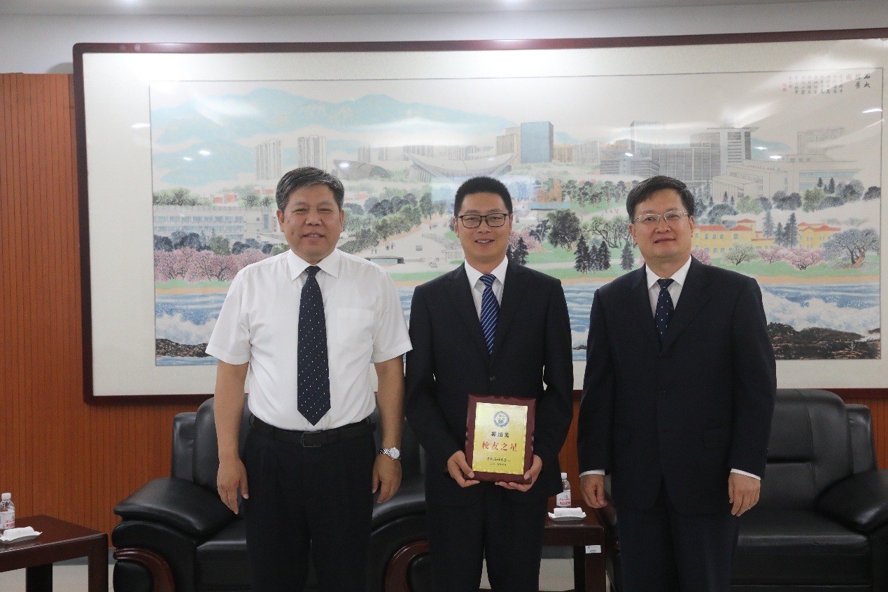 学校党委书记王勇、校长郝芳为郭旭光颁发校友之星奖牌 杨安摄影