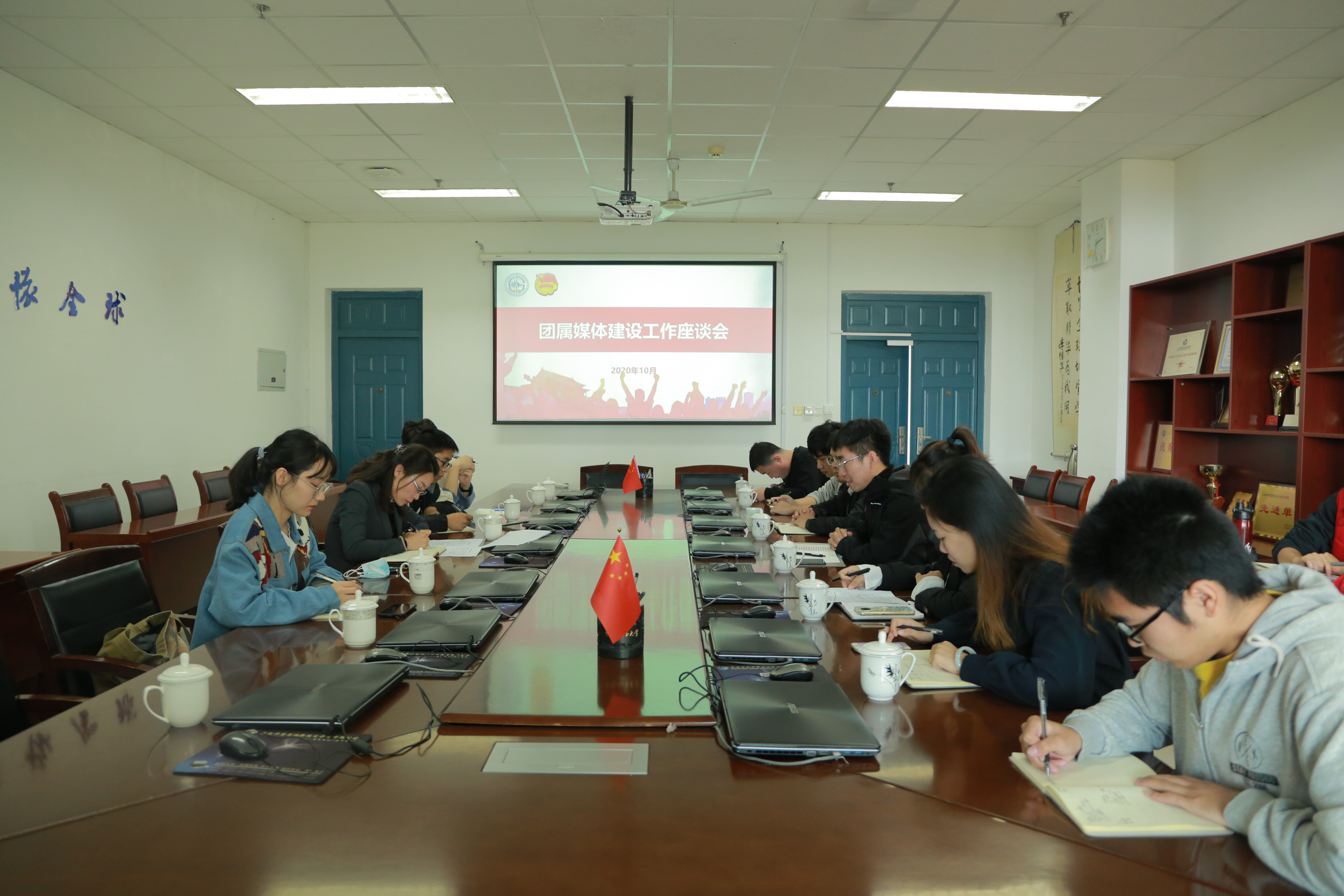 10月19日下午,校团委宣传部部长曲晓琳一行4人来MG冰球官网调研团属媒体建设工作,学院宣传工作指导老师徐明权、范静蕾,辅导员任金恒、姜永昶、黄睿、赵一伟以及学生干部代表参加座谈会,会议由徐明权主持。