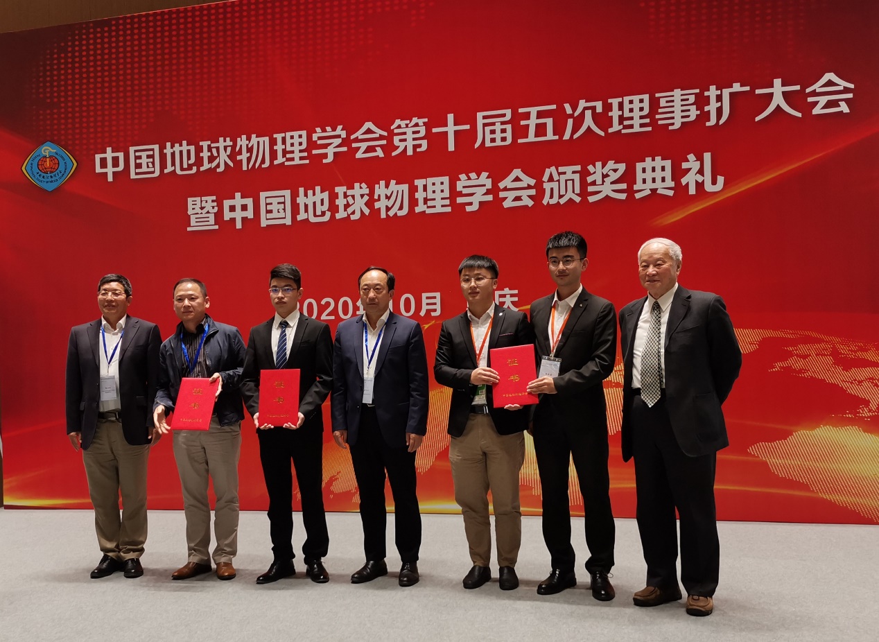 会议期间,举行了中国地球物理学会第十届五次理事扩大会和中国地球物理学会颁奖典礼,李振春教授、苏远大教授、宗兆云教授等师生参加了理事扩大会议。由我校MG冰球突破官网网站唐晓明教授团队完成的项目“超远探测反射横波测井理论技术突破与装备工业化”,孙成禹教授、唐杰副教授参与完成的项目“微动探测理论方法、关键技术与工程应用”,刘展教授参与完成的项目“深地探测地球物理多维多参数协同创新技术及应用”获2020年中国地球物理科学技术进步一等奖。苏远大教授获傅承义青年科技奖,这是我校继杜启振教授和韩同城教授后第三位获此奖项的教师。骆坤、陈阜斌、郑轩等学生组成的团队获地球物理知识演讲大赛地震测井组特等奖,娄璐烽、王心如、张余健等学生组成的团队获地球物理知识演讲大赛固体地球物理组二等奖,骆坤获大赛地震测井组最佳辩手奖。瞿晓阳、黄敏敏等学生获2019年地球科学联合学术年会优秀学生论文。