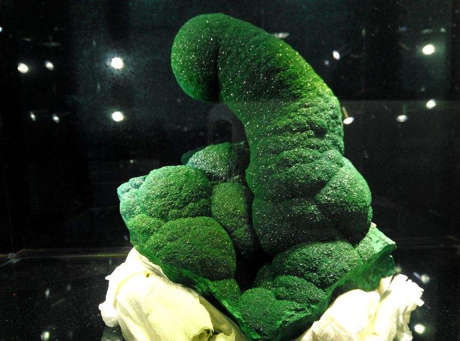 放射状(左)及钟乳状(右)孔雀石