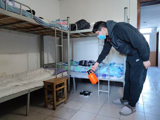 巢湖实习基地可同时容纳450人,考虑到疫情防控,本次实习未满员运行,每个宿舍均减少了入住人数,并设置了临时隔离观察室。同时,基地采取全封闭式管理,带队老师、辅导员每日早、晚走访学生宿舍,对学生宿舍及教室进行严格消毒,督促学生每日测温并上报自身情况。