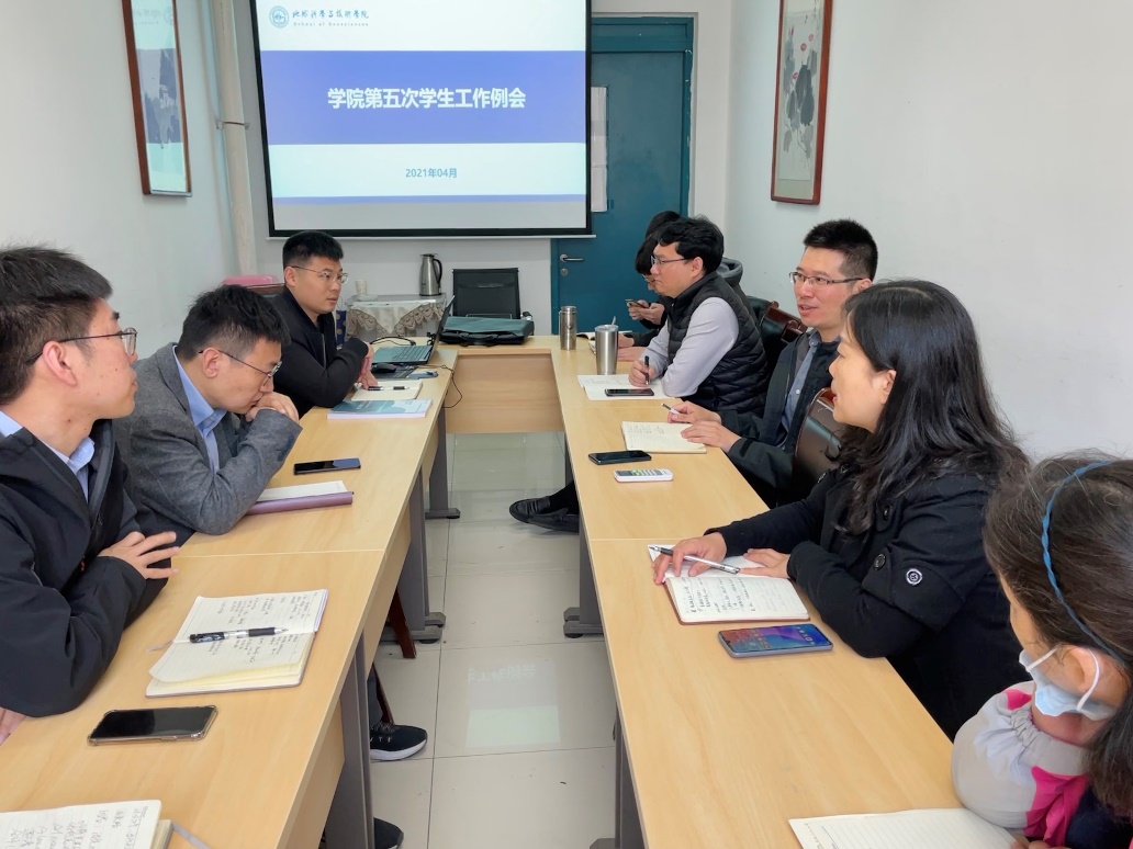 4月19日上午,学院在工科楼C座241会议室召开本学期第五次学生工作例会。学院党委副书记徐永涛及全体专兼职辅导员参加,会议由辅导员任金恒主持。