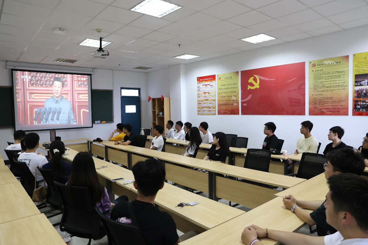7月1日上午8时,庆祝中国共产党成立100周年大会在北京天安门广场隆重举行,中共中央总书记、国家主席、中央军委主席习近平发表重要讲话。学院党委中心组成员、各系支部成员、师生代表集体收看了庆祝大会直播,广大师生还通过电视、网络、手机等收听收看庆祝大会盛况,认真聆听习近平总书记的重要讲话。习近平总书记在庆祝中国共产党成立100周年大会上的重要讲话引发学院师生热烈反响。