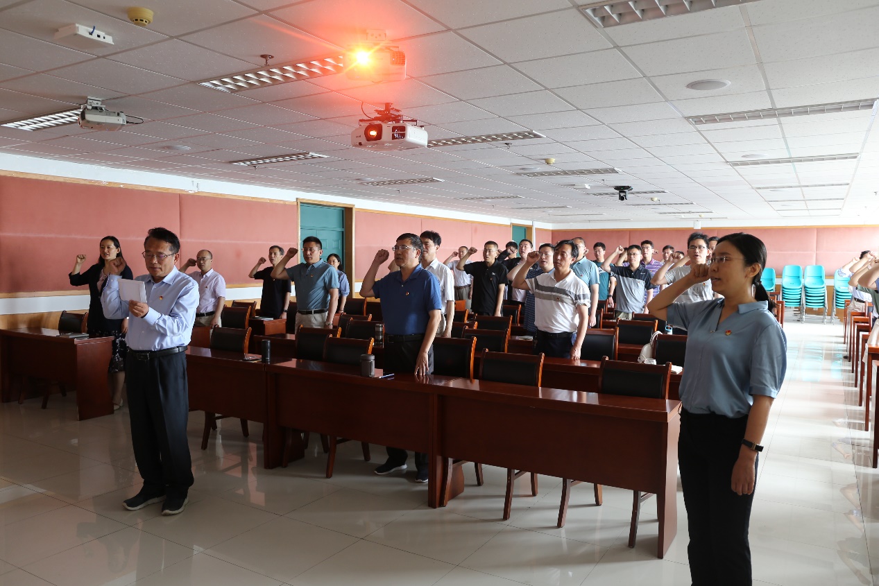 学院教职工收看直播后在党员蒋有录教授带领下重温入党誓词 徐明权摄影