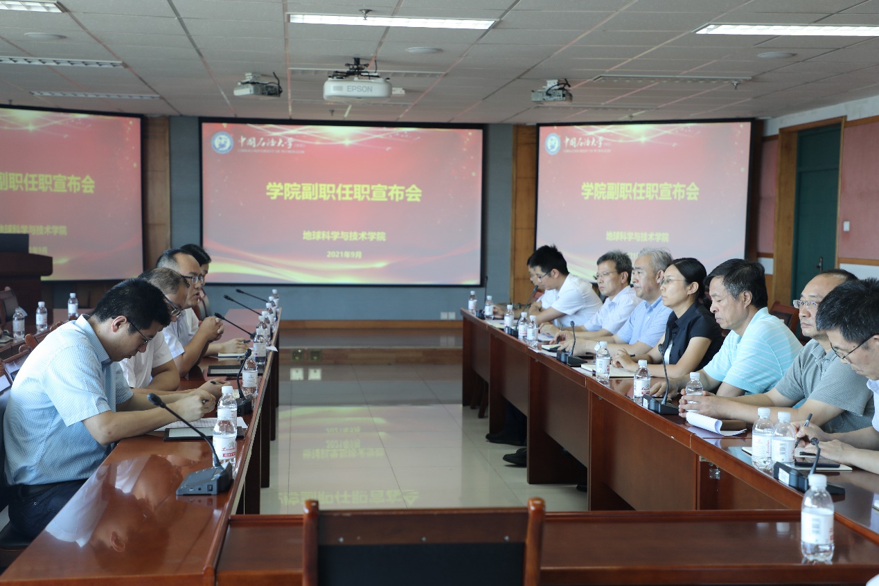原院长林承焰和教授委员会主任刘可禹分别对新一届学院领导班子表示祝贺,并祝愿学院全体师生员工在新一届班子带领下,奋发有为,再创辉煌。