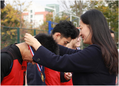 (学院党委副书记郑珊珊为获奖队员颁奖 黄伯阳摄)