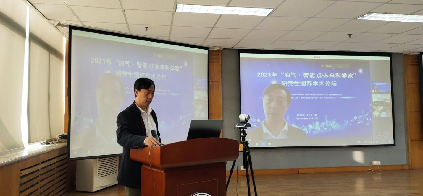 2021年11月3日至4日,2021年“油气•智能 @未来科学家”研究生国际学术论坛在我校胜利举办。本次论坛为线上线下同步进行,我校设立主会场,外地参会代表和专家在线上进行发言。本次论坛得到国内多所著名高校及科研院所的大力支持,先后收到来自北京大学、中科院声学研究所、兰州大学等参会论文50篇,经会议专家评审,最终优选26篇论文作大会发言。论坛紧扣油气和人工智能两大主题,全英文进行学术报告,主会场特邀请国内外15名油气和人工智能专家做学术前沿报告,并邀请美国得克萨斯大学阿灵顿分校 Max Qinhong Hu教授、国家级特聘专家刘可禹教授做科技论文写作的主题报告,研究生参会代表分别在油气地质和地球物理两个分会场做主题发言。