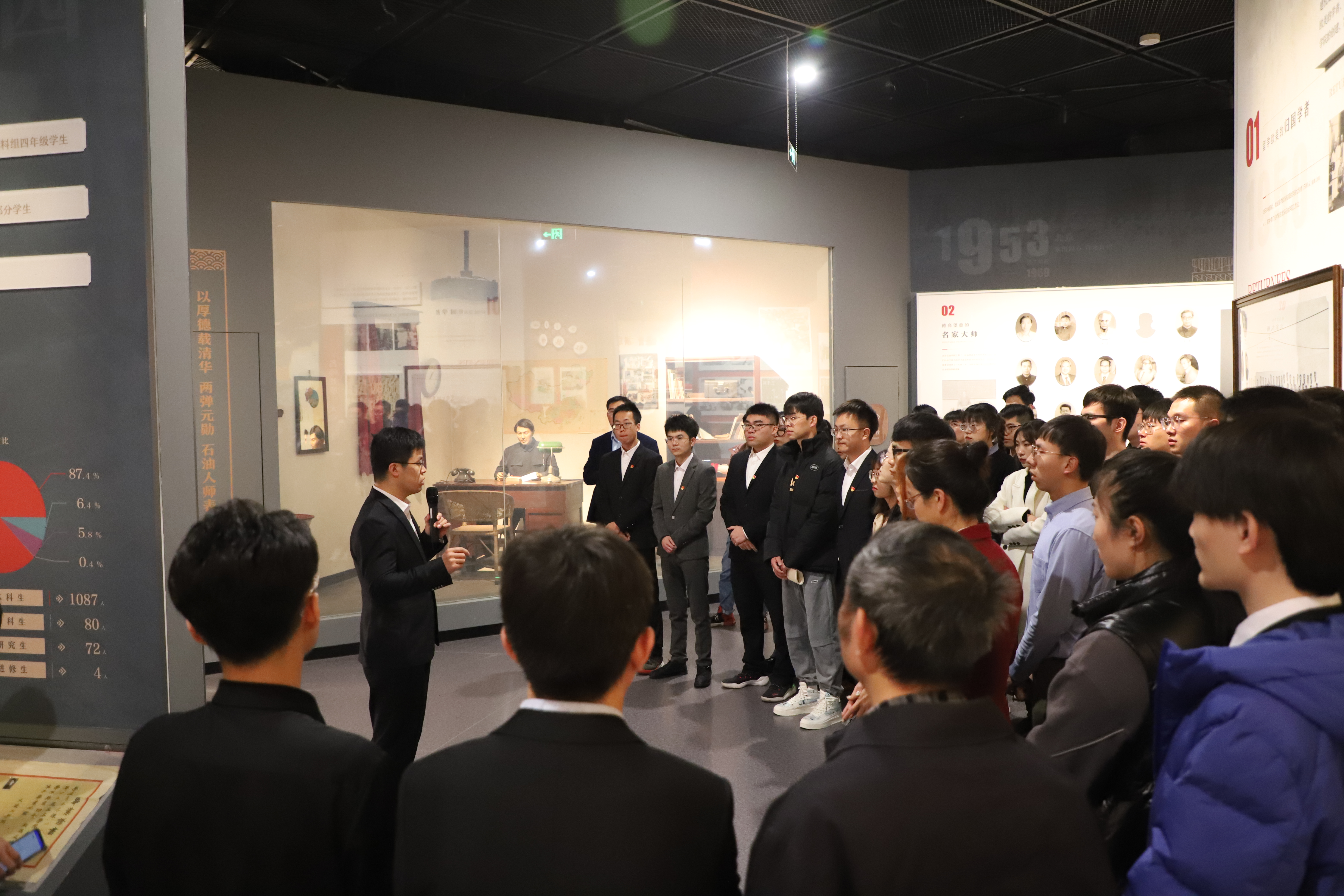 “祖国和人民的利益在期待着你们以高度的热情和毅力,把祖国的石油资源开发出来。”朱德委员长在给北京石油学院学生的回信中表达了对青年学生的殷切期盼。“把爱情献给你,把一生献给祖国。”在学校档案馆留存的中国化学工程学家、核工业学家、两弹功臣、北京石油学院副院长曹本熹写给妻子的150余封信中,字里行间无不流露出对家人的惦念和对祖国石油事业的一片赤诚。“从校园走向荒漠,助推国家第一颗原子弹、氢弹成功爆炸,解决朝鲜战争用油混乱问题,曹本熹的个人事迹化为老一辈石大人为守护国家安全、建设社会主义事业鞠躬尽瘁的一道缩影,石大人用血汗奉献党的光辉历程。”在MG冰球突破官网网站档案馆曹本熹塑像前,全体党员身姿笔挺,表情肃穆,听档案馆教师马梦华深入解读曹本熹先生个人事迹。