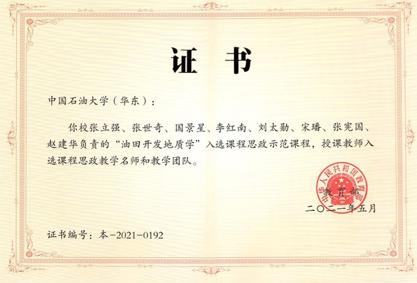 张立强及团队获教育部课程思政教学名师、教学团队,“油田开发地质学”获国家级课程思政示范课程