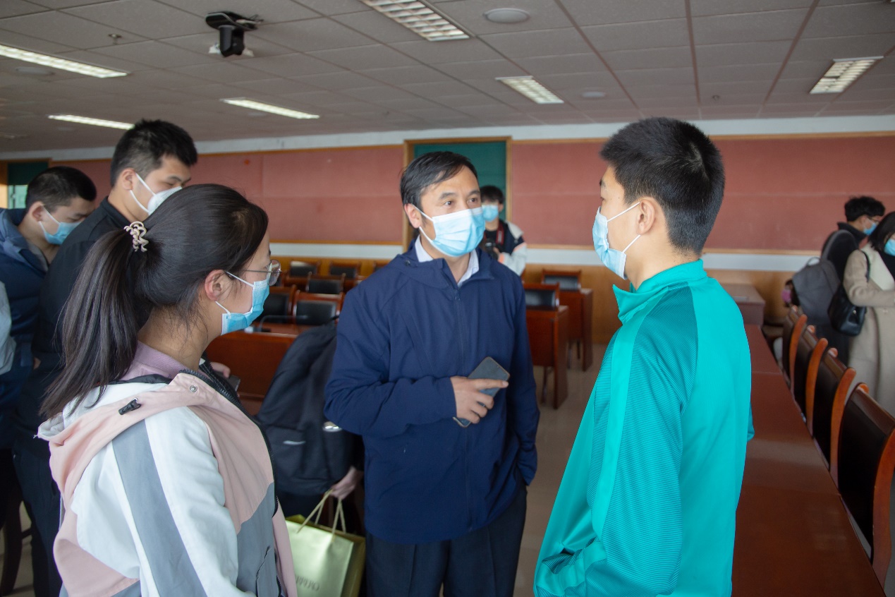 在师生问答阶段,学生踊跃发言,老师耐心解答。资源2103班王鹏凯问道:“作为一名本科生,平常接触的都是一些基础实践活动,怎么样才能加入导师的科研创新工作呢?”“关于本科阶段如何开展科研工作,不仅仅要把本科的知识学好,还要学习其他专业前沿知识,及时向导师请教,要多动手、参与实践,利用好身边的资源,循序渐进的参与到科研工作中。”徐尚老师做出解答。在师生自由交流环节,学生就自己遇到的问题以及未来规划的困惑,向老师请教,现场气氛热烈,师生交流气氛融洽,最后,师生进行合影纪念。会后,每名导师还将单独与所带的学生进行更深入的交流。
