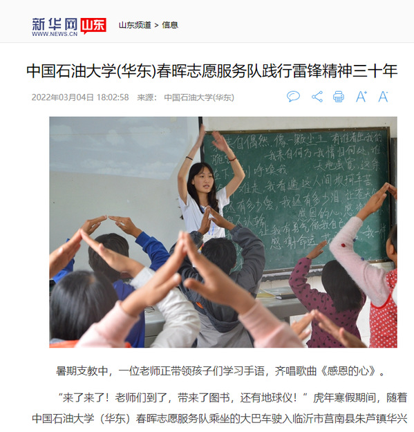 编者按:近日,学习强国首页【推荐】栏目以《MG冰球突破官网网站:学子三十年接力 续写新时代的雷锋故事》为题,宣传报道MG冰球官网春晖志愿服务队三十年志愿服务事迹。同时,该事迹还被新华网、中国青年报、中国教育新闻网、中国青年网、青岛日报社观海新闻等十余家上级媒体宣传报道。