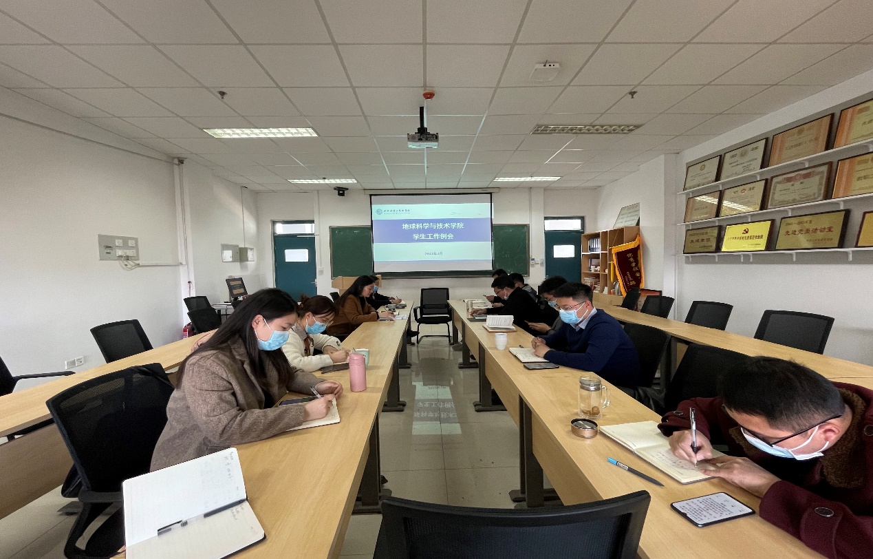3月31日下午,学院在工科楼C座367召开学生工作例会,专题学习新学期工作会精神、学校学工工作要点等,总结前期工作完成情况及研讨下一步重点工作,学院党委副书记郑珊珊及全体专兼职辅导员参会。