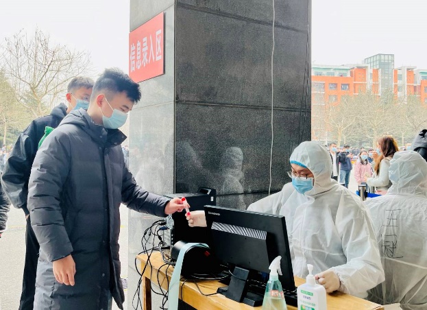 今年3月,黄岛再一次受到新冠肺炎疫情的影响,学校实施封闭管理,停止线下教学活动。疫情牵动着无数人的心,在这场没有硝烟的战争中,志愿者成为一线防控人员的有力援军,义无反顾,为打赢疫情防控阻击战贡献力量。封闭管理期间,资源系党支部鼓励留校教师积极配合学校防疫工作,党员带头投入到志愿服务中。在学校的统一部署下,资源系张宪国、徐尚、王广伟、王奇等人加入到防控疫情的队伍中,为学校师生的疫情防控工作贡献力量。四位老师主要负责核酸采集人信息录入、防疫物资的准备和秩序维持等工作。面对这场没有疫情阻击战,志愿者们筑起一个个坚实的防疫城堡。他们用自己的实际行动践行了责任与担当。王奇表示:“作为一名党员,我始终牢记中国共产党‘一切为了人民’的初心使命,在这样的特殊时期,能以志愿者的身份,帮助防疫人员是我义不容辞的责任。疫情虽无情,但是中国人民团结一心、同舟共济的精神风貌,凝聚起众志成城抗击疫情的强大力量。疫情面前没有旁观者,在这场牵动人心的抗疫斗争中,正是这些默默付出的医务工作者、基层工作者、志愿者等,汇聚了战胜疫情的磅礴力量。”