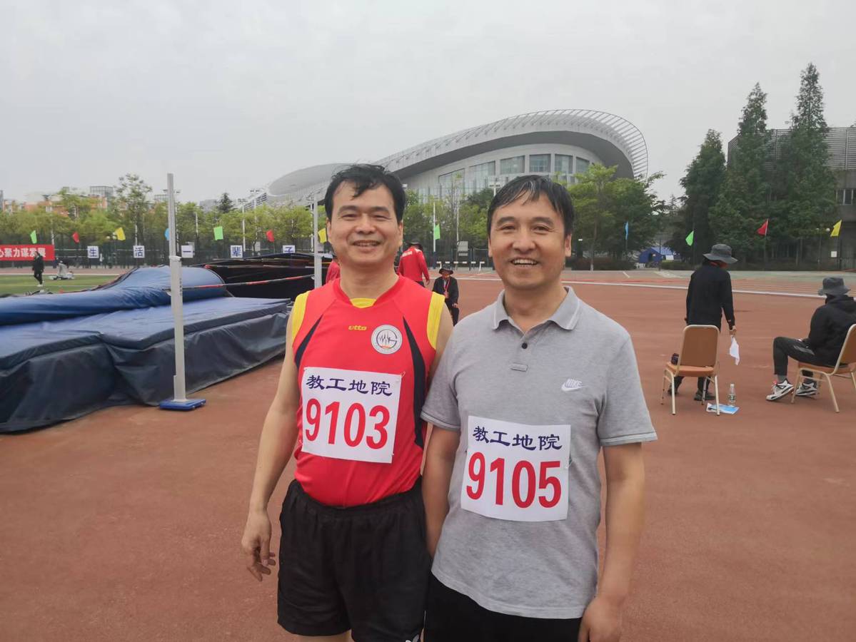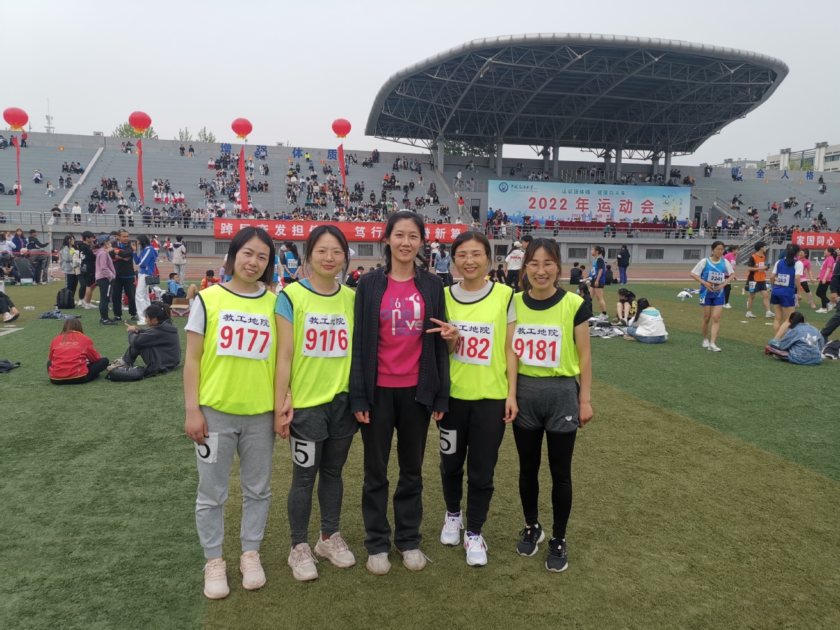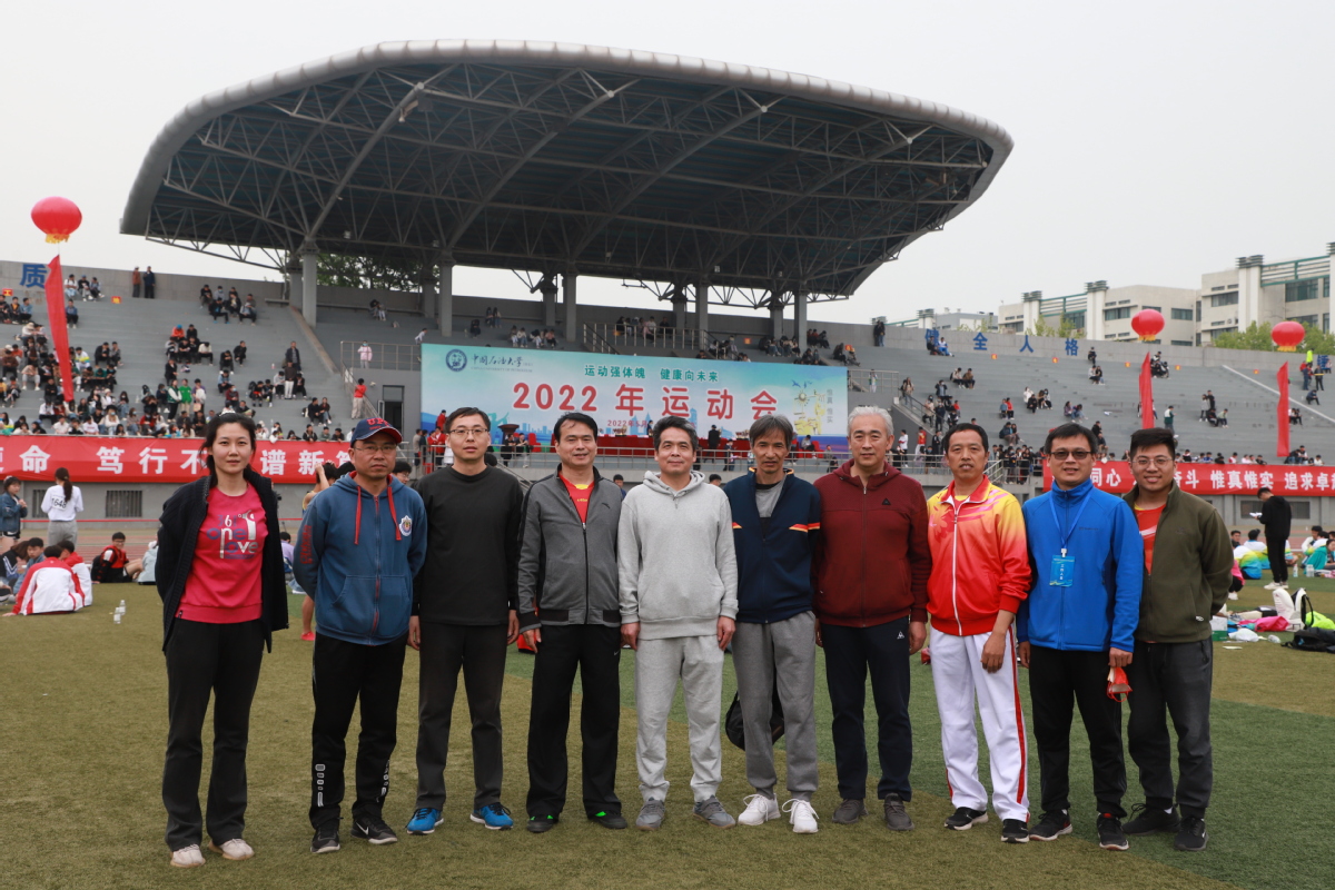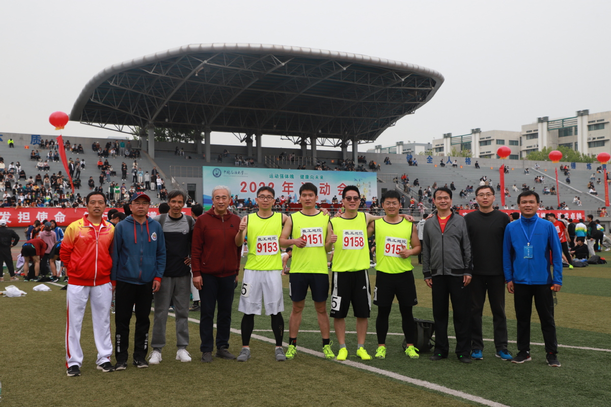 赛后校党委副书记、纪委书记吴强明,副校长周鹏、校工会主席王德钊与地院师生合影。运动会取得圆满收官,各位老师明年再见!