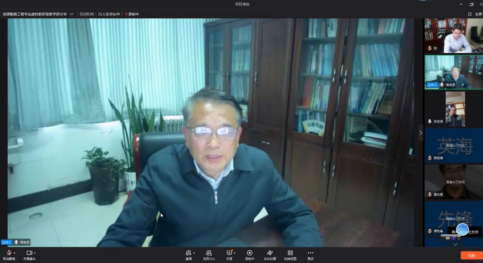蒋有录教授强调,要发挥虚拟教研室在资源勘查工程专业建设中的辐射作用,提升专业整体发展水平。建成一个全国资源勘查工程专业信息共享平台;打造一支引领资源勘查工程专业发展的教学团队,提升资源勘查工程专业教师的教学水平;产出一批示范同类专业发展的教学成果,示范引领同类专业发展;形成一种以行业精神为特色的文化传承,打造全国资源勘查工程专业教师教学发展共同体和文化传承。与会专家展开了深入研讨。