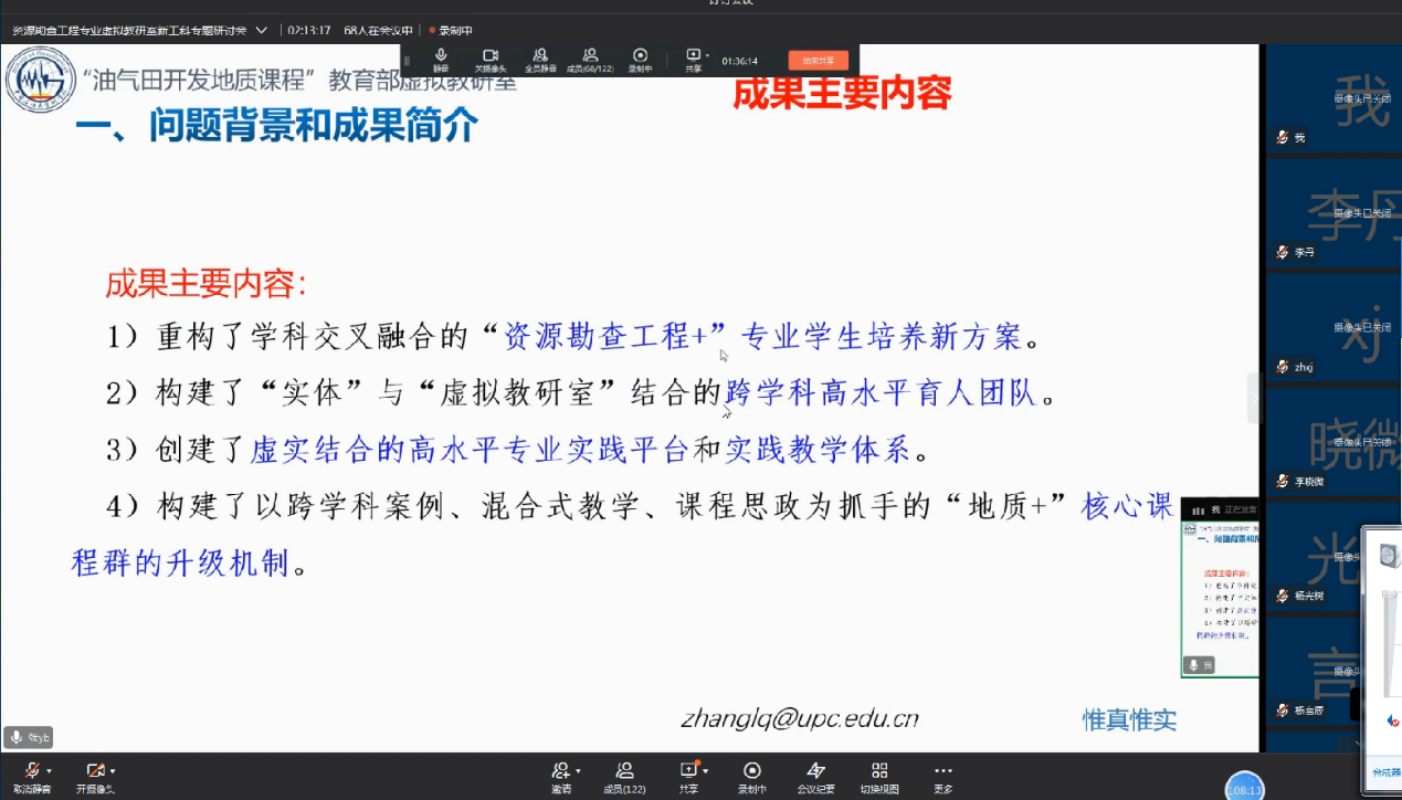 研讨会由资源勘查工程专业虚拟教研室主任、国家级教学名师、国家万人计划教学名师、MG冰球突破官网网站蒋有录教授主持。
