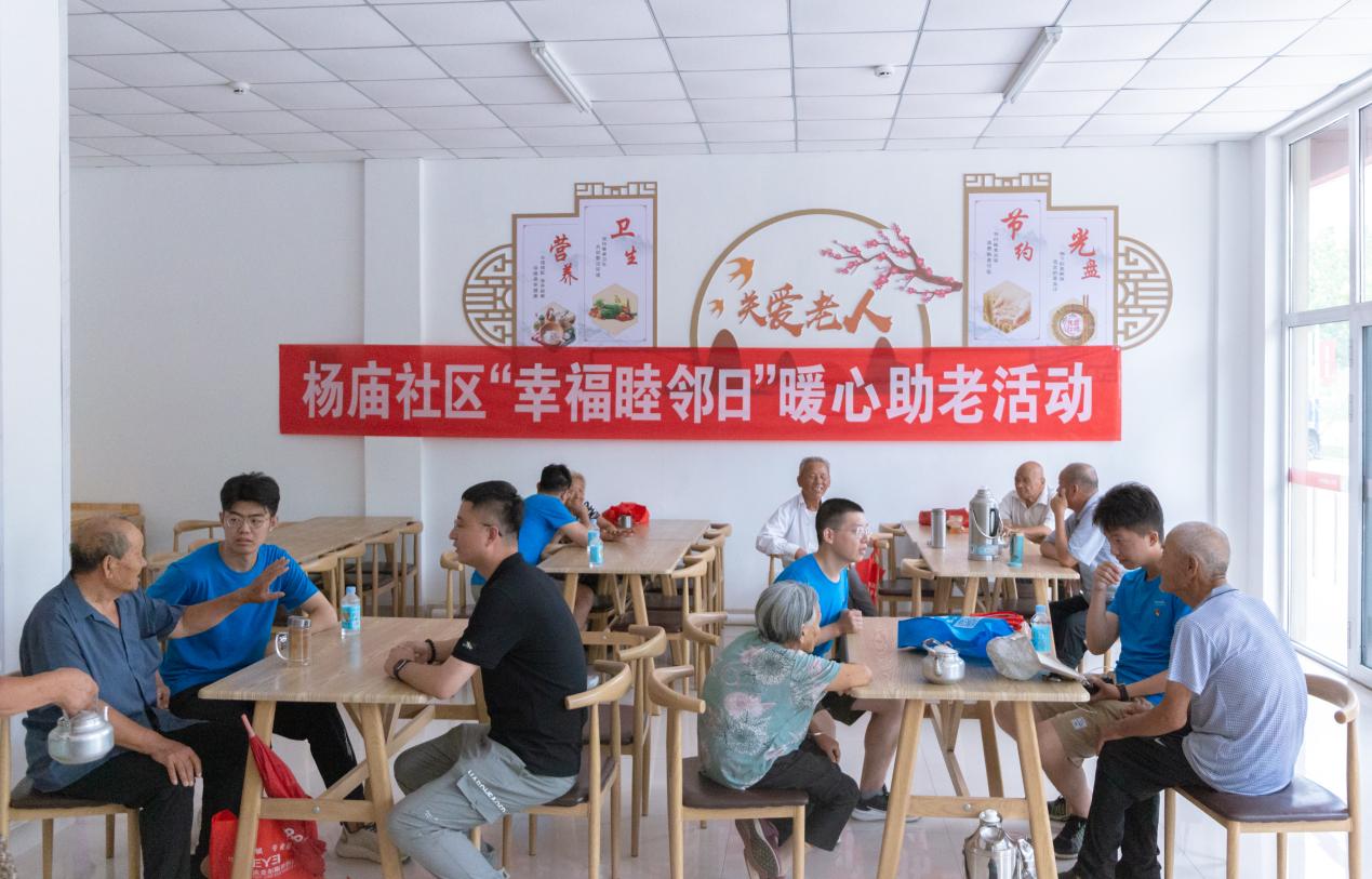 实践队员在杨庙社区与社区老人话家常 李洪刚摄影