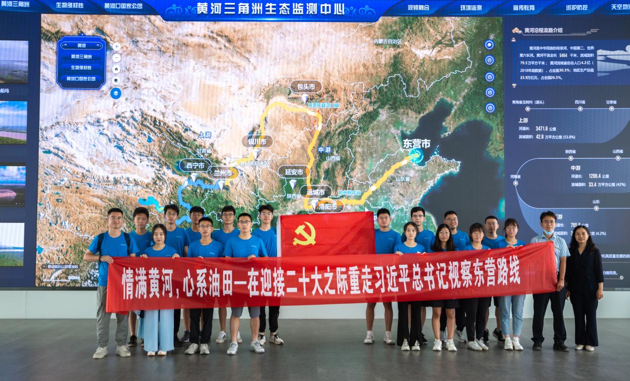 山东东营,一片因黄河而变的土地,一座因油而生的城市。“黄河奔腾万里,在东营孕育出年轻的冲积平原;1961年在此喷涌出华北平原第一股工业油流,胜利油田正式发现。”实践队队长黄东谋在出发前的准备会上动情地说,“从无到有,从小到大。党的建立与发展也正是如此,组建这支党员实践队,我们要感受中华民族翻天覆地的巨变,要坚守初心,继续走好这条路。”