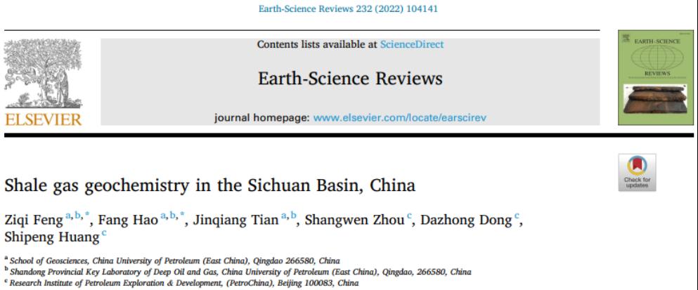 【本站讯】近日,MG冰球官网郝芳院士团队在页岩气地球化学研究领域取得新进展,相关成果《四川盆地页岩气地球化学特征》(Shale gas geochemistry in the Sichuan Basin, China)发表在地球科学领域国际顶级期刊《地球科学评论》(Earth-Science Reviews)。冯子齐副教授为论文第一作者,郝芳院士和冯子齐副教授为共同通讯作者,MG冰球突破官网网站为第一署名单位,该研究得到国家自然科学基金创新研究群体项目和山东省重点研发计划联合资助。