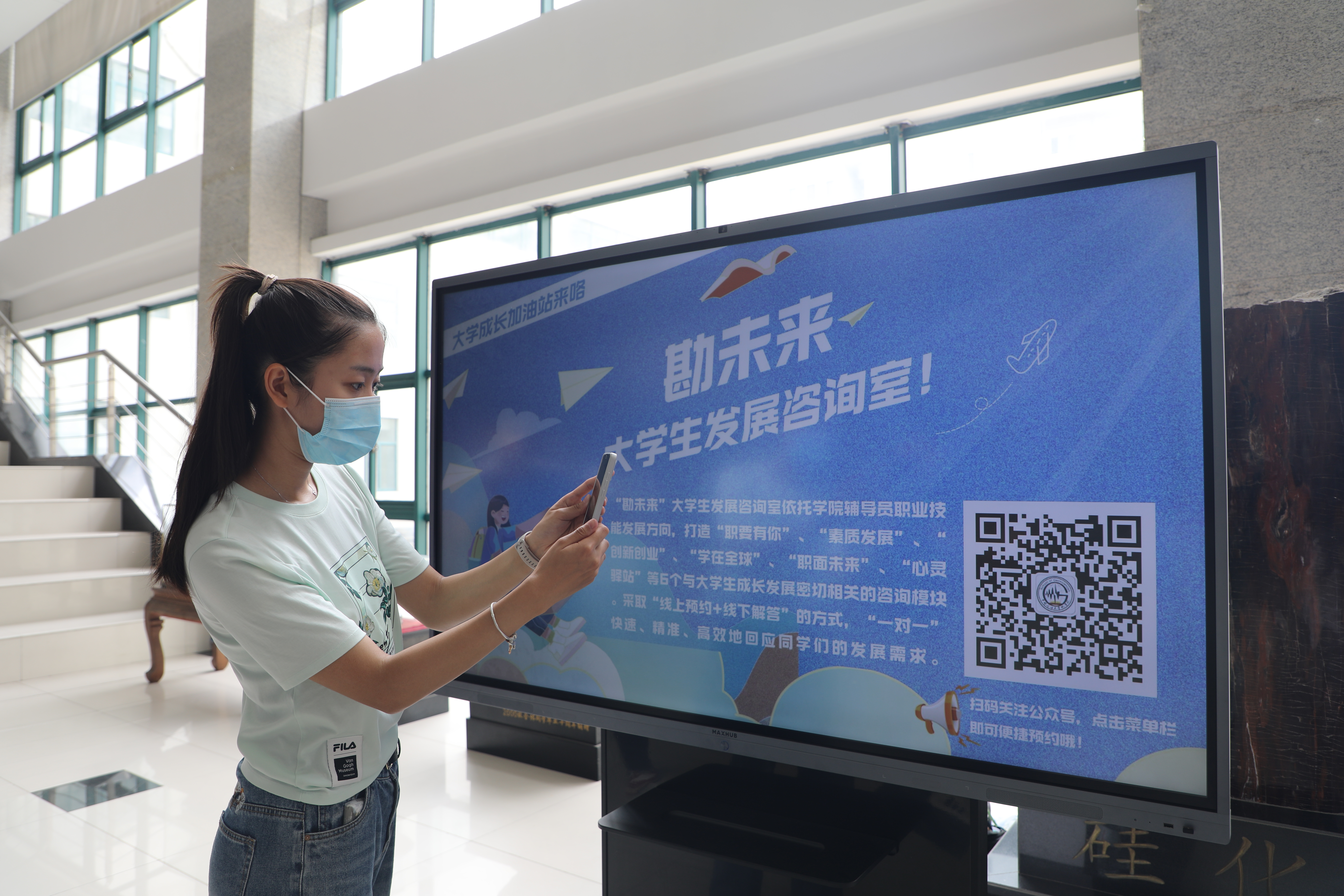 在报到现场,学院开展时光寄语——“写给四年后的自己”、“送你一张拍立得,开启地院新生活”、“人生若只如初见,我和地学碰个面”等特色迎新活动。其中,为新生定格大学的第一抹微笑的活动受到新同学们的广泛好评。新生们纷纷拍照留念,定格下初入校园的美好瞬间。地质学专业2202班林姝含表示,“当我拿到那张照片的时候,仿佛那是一段时光寄语,定格的微笑也是我对大学生活的无限希冀。”工科楼C座大厅摆放的一台“时光机器”同样吸引了新生们的关注,同学们在印有油气地学领域前辈榜样的明信片上写下对为未来的憧憬。来自甘肃长庆油田的“油三代”、资源2022级本科新生段越奇在明信片上写道,“我一定会在石大擎起父辈们的精神火炬,传承石油精神,一步一步、脚踏实地不断锤炼自我,为我国油气勘探事业拾柴添薪!”一张张入学时的心愿卡片,不仅承载着薪火相传的勘探精神,更寄托着对未来的无限期待。迎新现场还有一款“私人定制”——“勘未来”大学生发展咨询室吸引很多同学前来“解锁”,只需要扫码关注即可方便预约,其帮助新同学们明确自身发展需求,提高自主规划能力,合理利用学院资源。