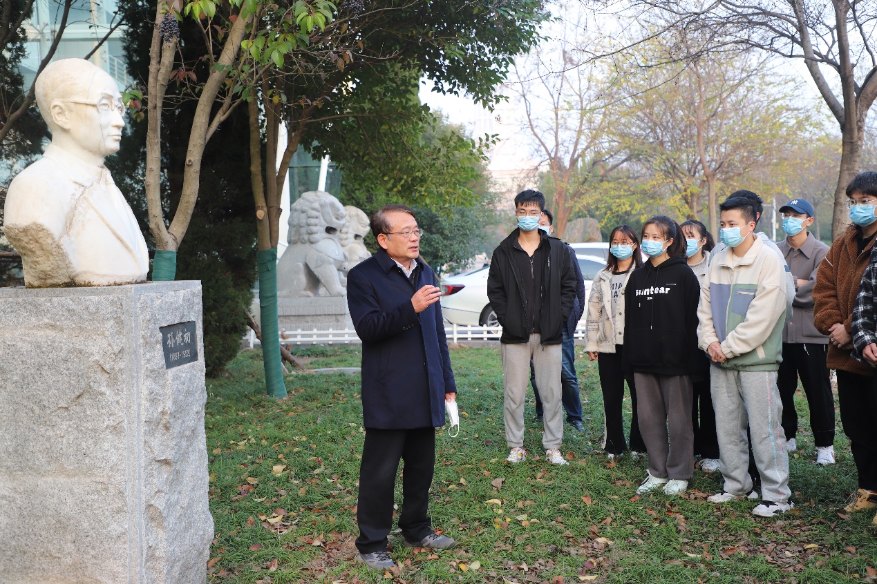 活动伊始,在蒋有录教授、张立强教授的带领和讲解下,师生深入了解孙健初等老一辈石油地质人的生平,回顾MG冰球突破官网网站发展的光辉历程,加强对资源专业的认识。在孙健初、冯增昭等前辈的雕像、照片面前,党支部成员目光一致,肃然起敬。