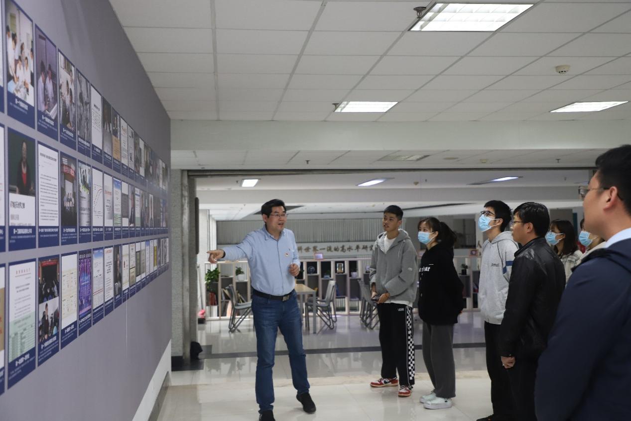 张立强老师为党员们讲解学院发展成果 张世泽摄