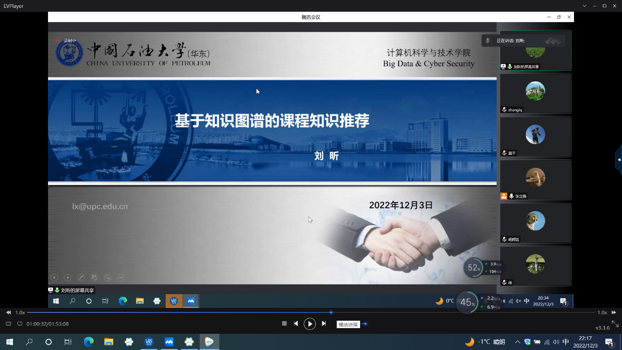 MG冰球突破官网网站计算机学院软件工程系副主任刘昕副教授作了题为“基于知识图谱的课程知识推荐”的精彩报告。刘老师首先介绍了知识图谱和思维导图的差异及知识图谱的发展、构成要素等;详细介绍了知识图谱的构建,包括本体构建、知识抽取、知识融合、知识更新和知识存储;展示了《人工智能导论》课程案例、软件工程培养方案案例、油藏工程管理、天然气标准知识图谱等科研案例,和与会教师探讨了如何构建基于知识图谱的数字化课程。