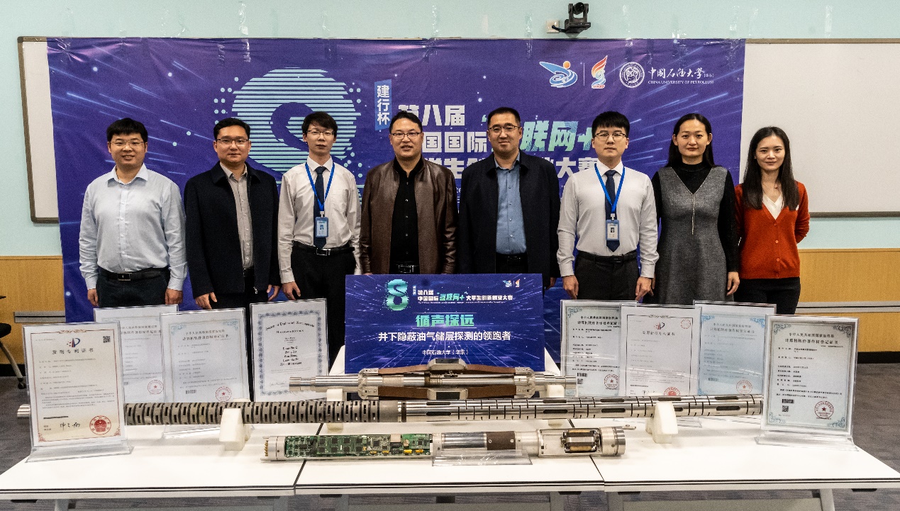 “循声探远——井下隐蔽油气储层探测的领跑者”项目成员包括李杨虎、窦响、张恒建、谈笑宇、马鸿飞、张翰林、古希浩、程凤、潘金林、刘晓阳、王文浩、王怡宁、饶博、武文轩、何承天,指导教师为谭宝海、张凯、庄春喜、郑珊珊。针对国内行业痛点,该团队依托低频偶极横波远探测理论方法,改进了超远探测偶极横波成像测井仪器,并配套了声波远探测成像测井处理软件,面向油气勘探市场提出“仪器租赁+软件处理”的远探测声波测井服务,满足油田对复杂隐蔽性油气藏勘探的需求。