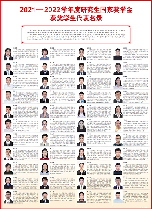 5月4日,《人民日报》第11、12版整版刊登了《2021—2022学年度研究生国家奖学金获奖学生代表名录》,我校MG冰球突破官网网站2020级博士生陈阜斌名列其中。