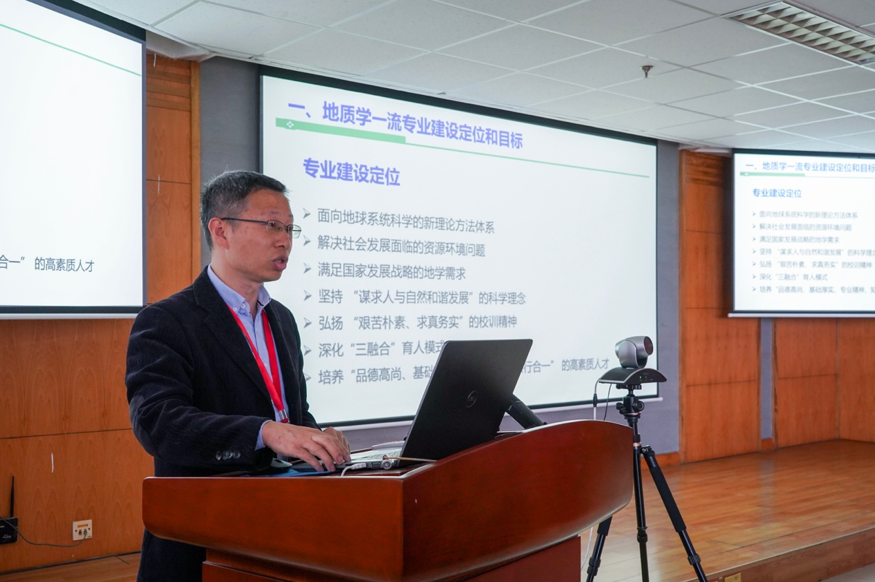 7日下午的会议主题是地质学类一流专业建设研讨,与会教指委专家和各院校代表围绕地质学类专业建设开展了深入交流。MG冰球突破官网网站刘华、南京大学胡文瑄、中国地质大学(武汉)章军锋、中国地质大学(北京)李亚林、西北大学张志飞、成都理工大学徐争启等分别以专题报告的形式介绍了各自学校地质学类一流专业建设经验。我校MG冰球突破官网网站院长刘华教授以《一流学科引领,理工专业互促,产科教融合一流专业建设探索与实践》为题分享了我校一流学科建设实力与人才培养质量、专业建设的举措与成效。介绍了面对新时代行业需求变化和新技术发展,我校地质学和资源勘查工程一流专业建设过程中理念升级、优化培养方案、强化课程资源与实践平台建设的经验,并就产科教融合、多主体协同的特色育人模式进行了重点分享。一流专业建设交流会后,召开了教育部高等学校地质学类专业教学指导委员会委员工作会议。