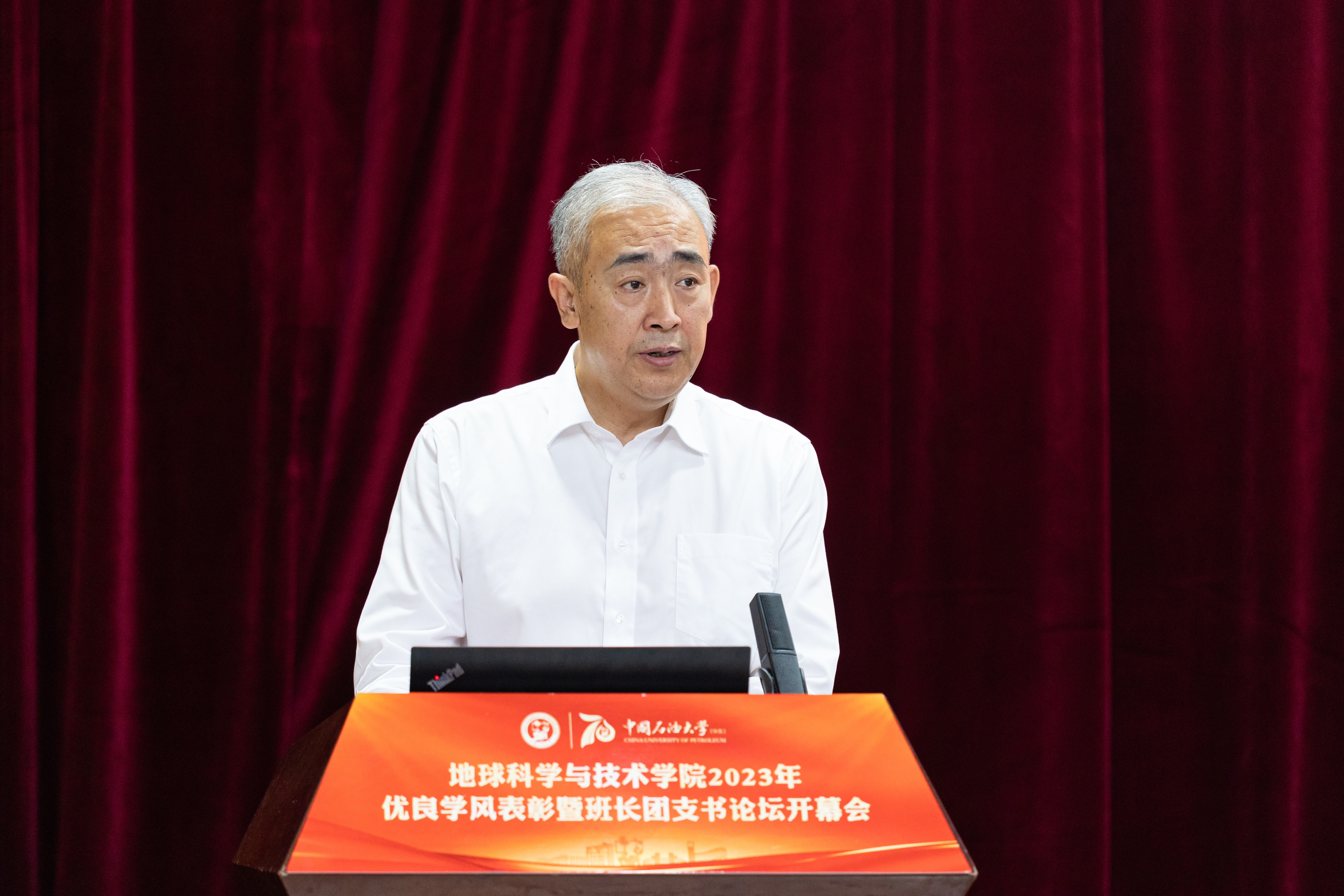 “今年是建校七十周年,也是学院建院70周年,‘为祖国加油争气’的接力棒交到你们手中,唯有心怀家国、矢志奋斗,潜心钻研、勇于创新,才能在奋力推进中国式现代化、实现中华民族伟大复兴的征程上书写勘探人的壮丽篇章!”赵放辉在讲话中表达对学院学生寄望深厚。