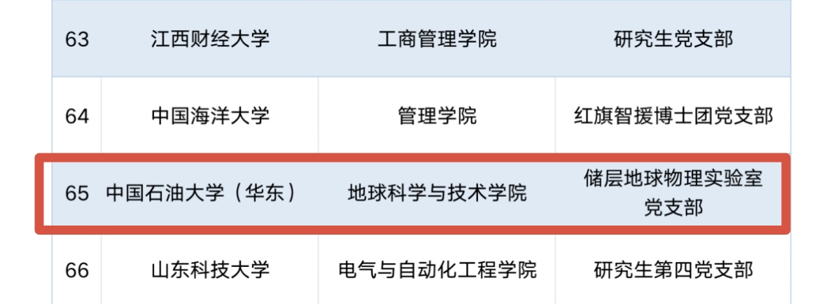 近日,第二批全国高校“百个研究生样板党支部”和“百名研究生党员标兵”创建培育工作验收结束,MG冰球官网储层地球物理实验室党支部通过2年培育建设,经高校评估总结、属地党委教育工作部门把关审核、教育部相关司局和单位审查顺利通过验收。