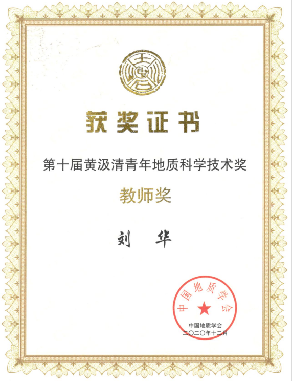 2020年11月,第十届黄汲清青年地质科学技术奖揭晓,MG冰球官网刘华教授获黄汲清青年地质科学技术奖教师奖。