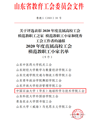 2021年6月,山东省教育工会委员会发文《关于评选表彰 2020 年度直属高校工会模范教职工之家 模范教职工小家和优秀工会工作者的通报》(鲁教工〔2021〕30 号),MG冰球官网工会获模范教职工小家称号,全省共9个。
