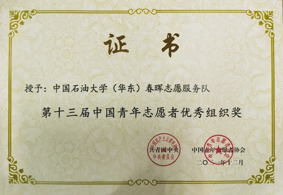 2021年12月,MG冰球官网春晖志愿服务队等100个组织荣获第十三届“中国青年志愿者优秀组织奖”。
