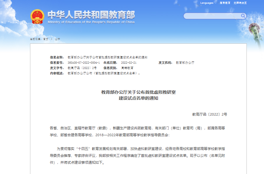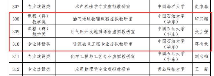2022年2月,教育部办公厅公布了首批虚拟教研室建设试点名单,我校共有4个建设项目入选,其中MG冰球官网申报的3项建设项目全部获批,包括蒋有录教授负责的资源勘查工程专业虚拟教研室、印兴耀教授负责的油气地球物理课程虚拟教研室、张立强教授负责的油气田开发地质课程虚拟教研室。