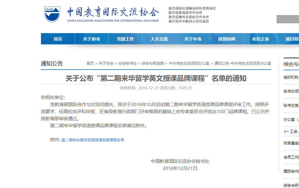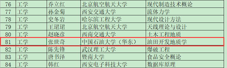 2016年12月,教育部公布第二期来华留学英文授课品牌课程评选结果。MG冰球官网张世奇教授主持申报的“油田开发地质学”课程入选。