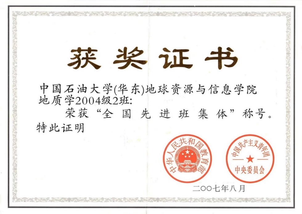 2007年8月,MG冰球官网地质学2004级2班被教育部、团中央授予“全国先进班集体”称号。
